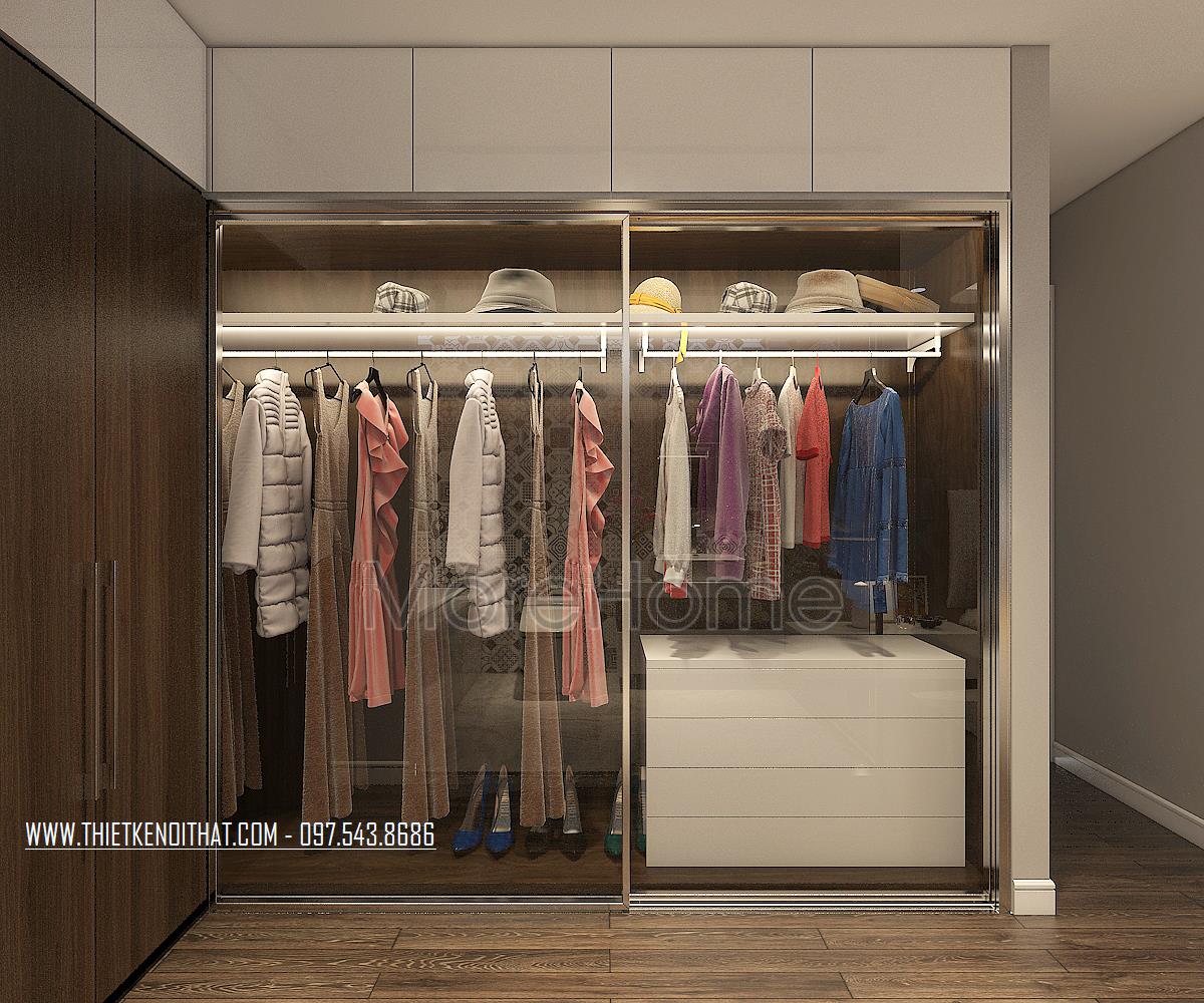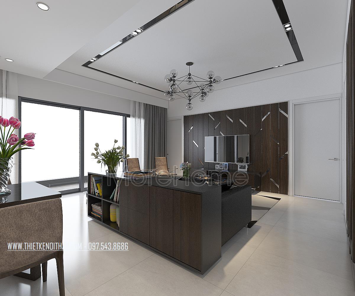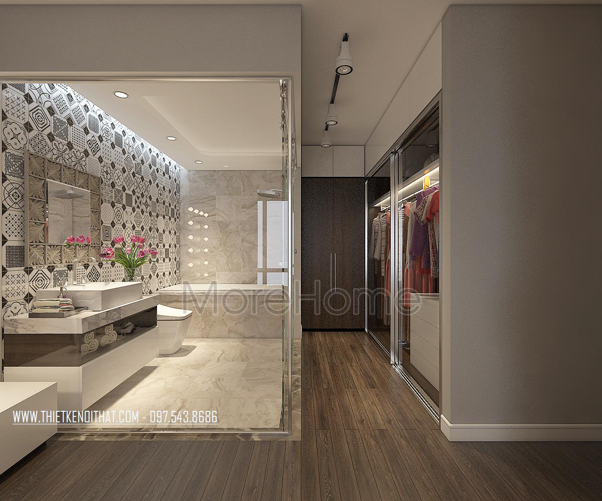 Cuối cùng là thiết kế nội thất phòng ngủ hiện đại. Tone màu mà kiến trúc sư lựa chọn cho các không gian phòng ngủ cũng đều là các tone màu nhẹ nhàng mang đến sự ấm áp và yên bình cho không gian riêng tư. Các thiết kế tủ kệ được kết hợp khéo léo vừa đảm bảo tính công năng lại không làm mất đi vẻ đẹp thẩm mỹ và còn góp phần lớn giúp tiết kiệm không gian. Các vật liệu nhẹ như kính cường lực, gỗ cũng được sử dụng giúp tăng độ sáng và mở cho căn phòng, tránh các thiết kế built-in cứng nhắc và đơn điệu.