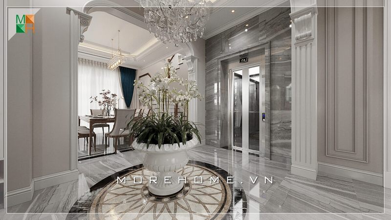 Thiết kế hành lang thông thoáng, sang trọng khi sử dụng đá lát cao cấp từ Morehome.