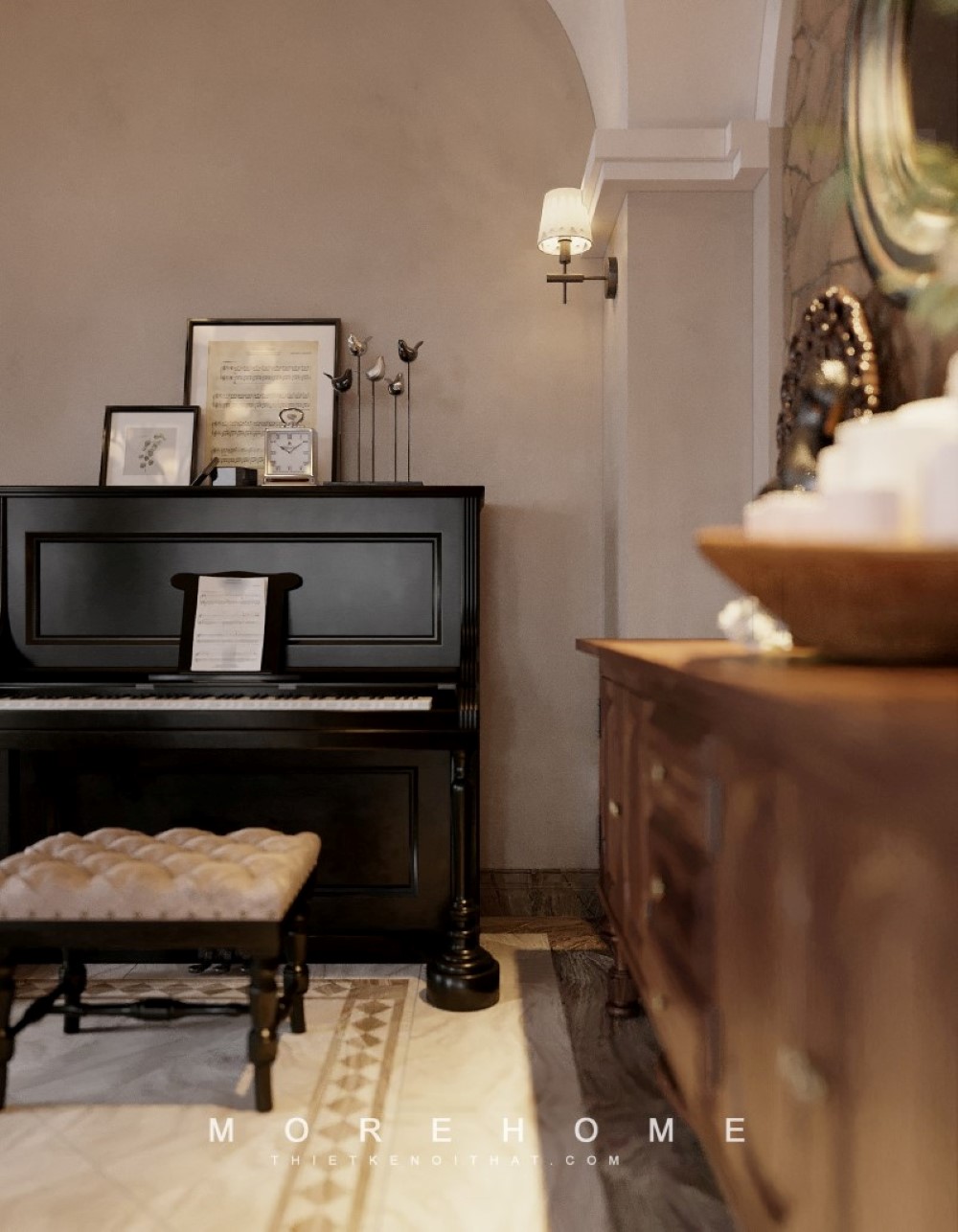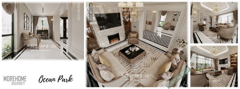 Nội thất màu sắc nâu trầm được sử dụng xuyên suốt trong thiết kế công trình Ocean Park với phong cách tân cổ điển sang trọng, giúp tạo sự đồng nhất cho cả không gian biệt thự