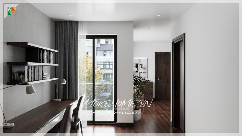 Đầy hứng khởi và động lực để làm việc, học tập tại nhà nhờ thiết kế nội thất sáng tạo kiểu hiện đại và cửa kính trong suốt tạo sự thoáng đãng.