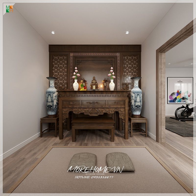 Với sự thành kính và hiểu biết về cách bố trí, Morehome giới thiệu cho quý vị mẫu thiết kế phòng thờ Phật Quan Âm hợp phong thủy trong dự án thiết kế nội thất biệt thự Vinhomes Imperia Hải Phòng.