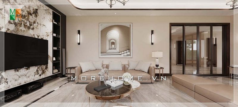 Mẫu thiết kế phòng khách của các loại nhà như chung cư, nhà phố, biệt thự phong cách hiện đại với đồ nội thất gỗ công nghiệp cao cấp.