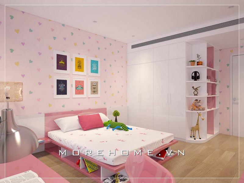 . Tạo ra một không gian phòng ngủ cho bé gái đẹp mắt và tiện nghi, toàn bộ nội thất được thiết kế đơn giản và tích hợp nhiều chức năng như kệ tủ đồ, giường ngủ, tủ quần áo... để tạo nên một căn phòng hoàn hảo.